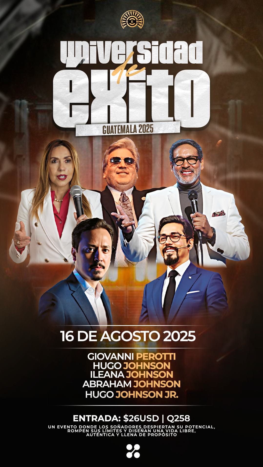 Un evento diseñado para quienes saben que nacieron para más. Aquí los soñadores despiertan su verdadero potencial, rompen sus límites y descubren herramientas para diseñar una vida libre, auténtica y llena de propósito. Una experiencia transformadora donde aprenderás a tomar el control de tu historia, conectarte con mentores de alto impacto y rodearte de personas que, como tú, están listas para dejar huella.
